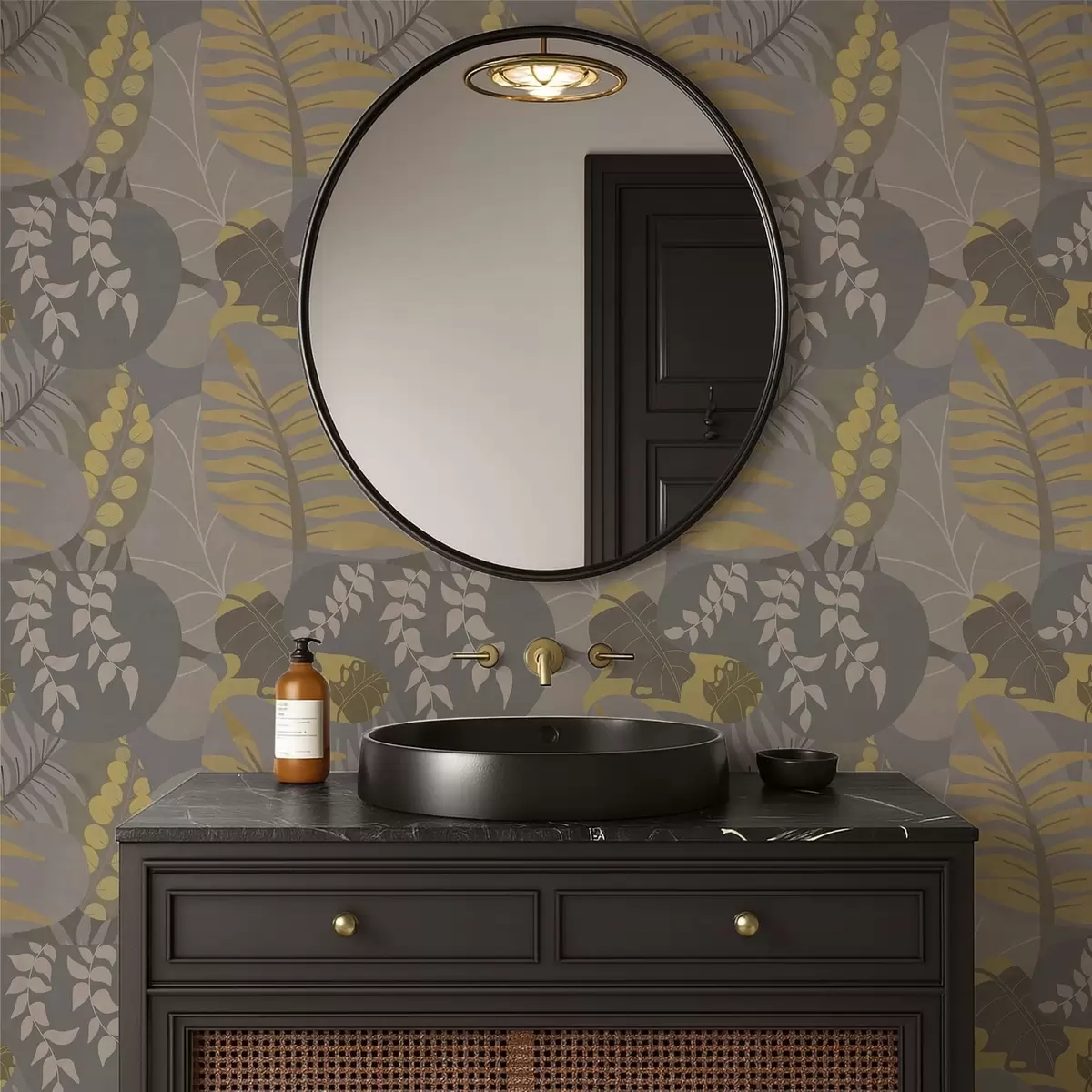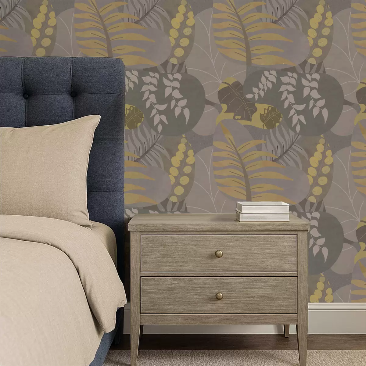 Тапет Абстрактни листа в сиви и жълти тонове Nr. a01112