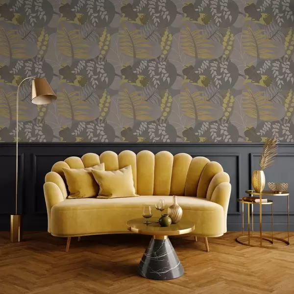 Тапети Абстрактни листа в сиви и жълти тонове a01112
