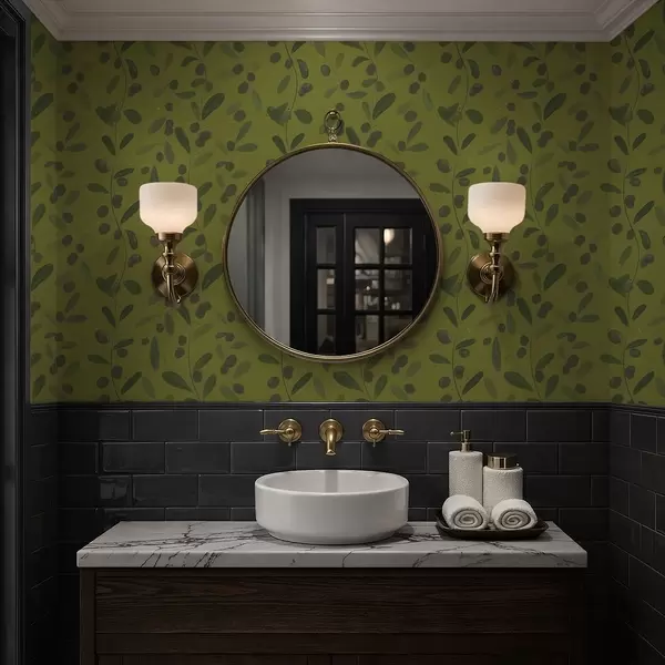 Тапет Зелени клони с листа и плодове на маслина Nr. a01113