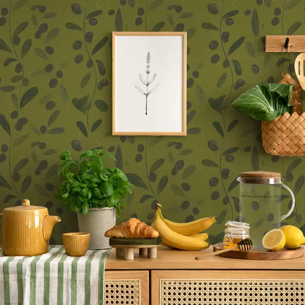 Тапет Зелени клони с листа и плодове на маслина Nr. a01113