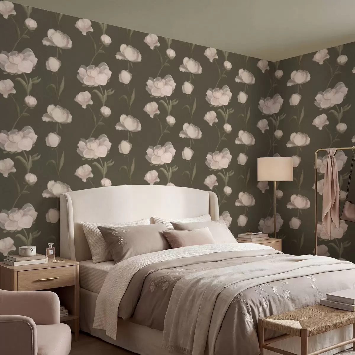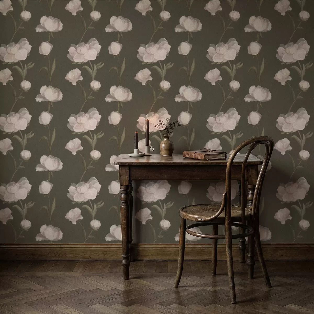 Тапет Нежни розови божури на тъмен фон Nr. a01114v1