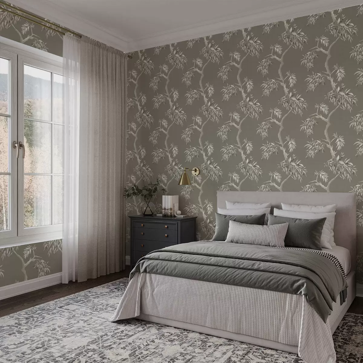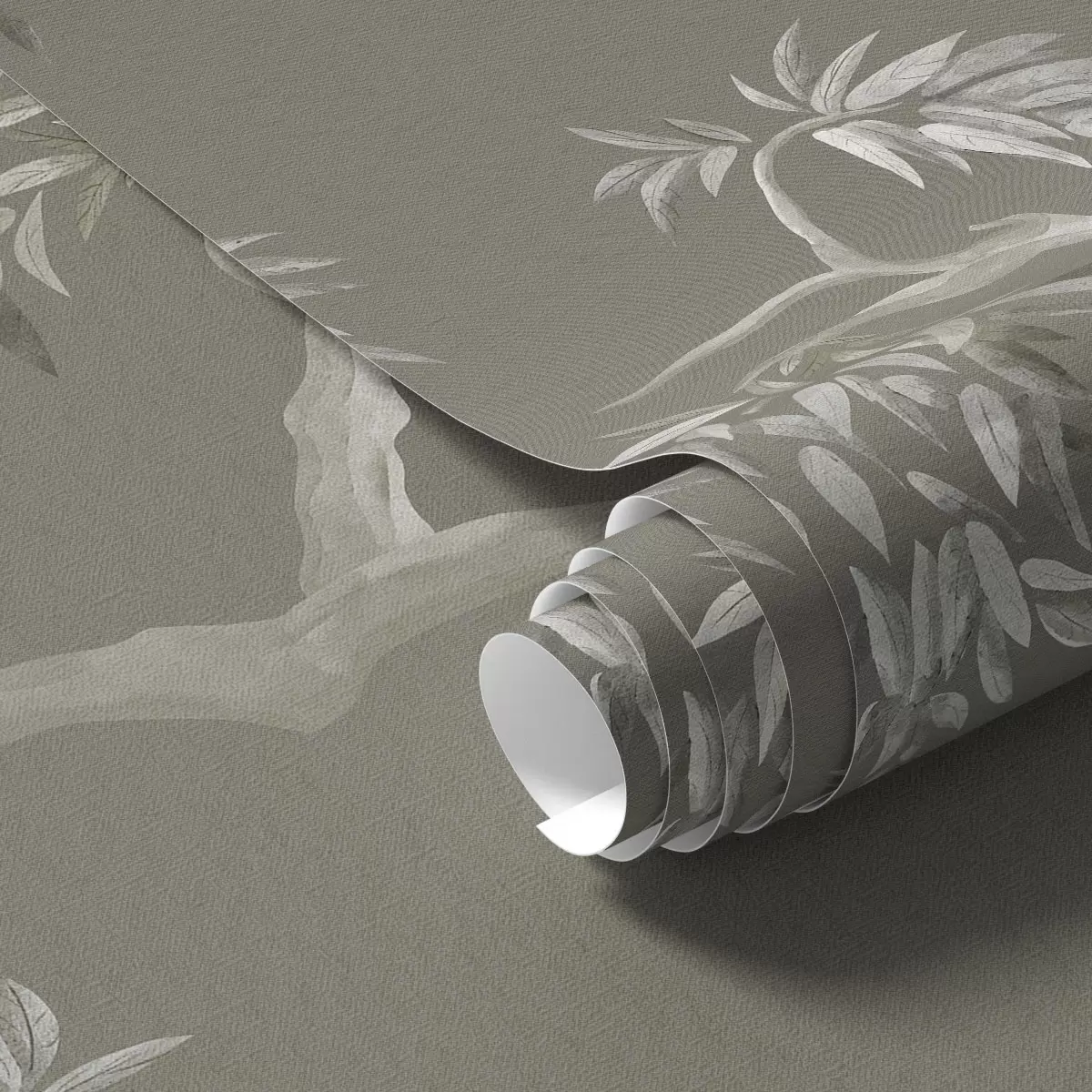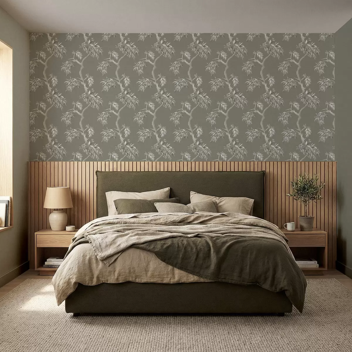Тапет Лека клонка с листа на маслинено зелен фон Nr. a01117v1