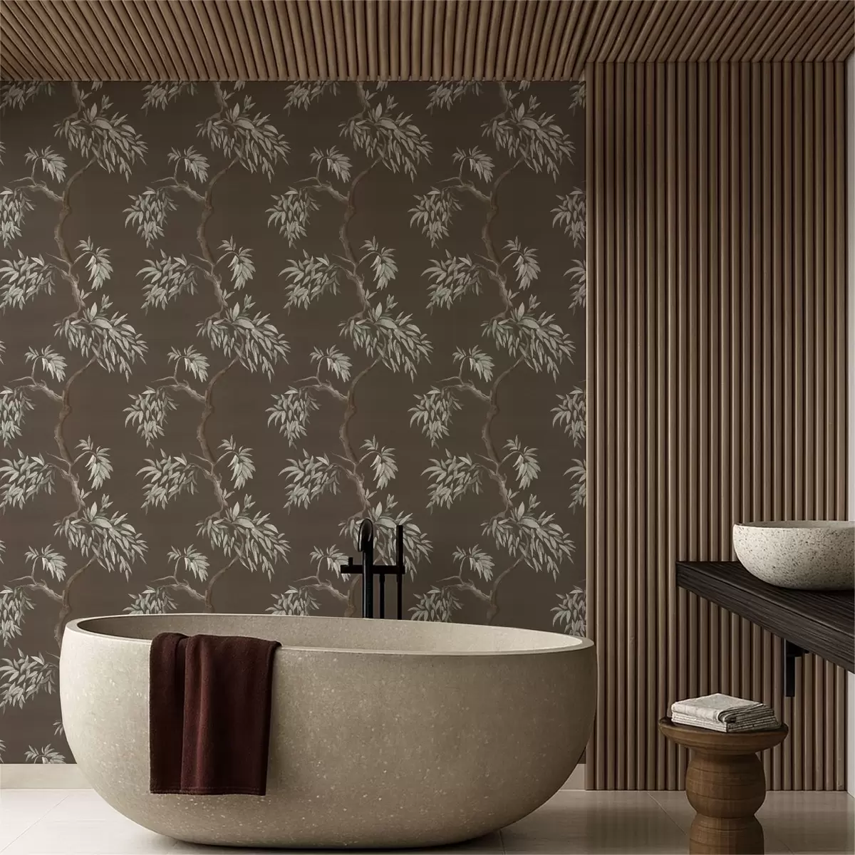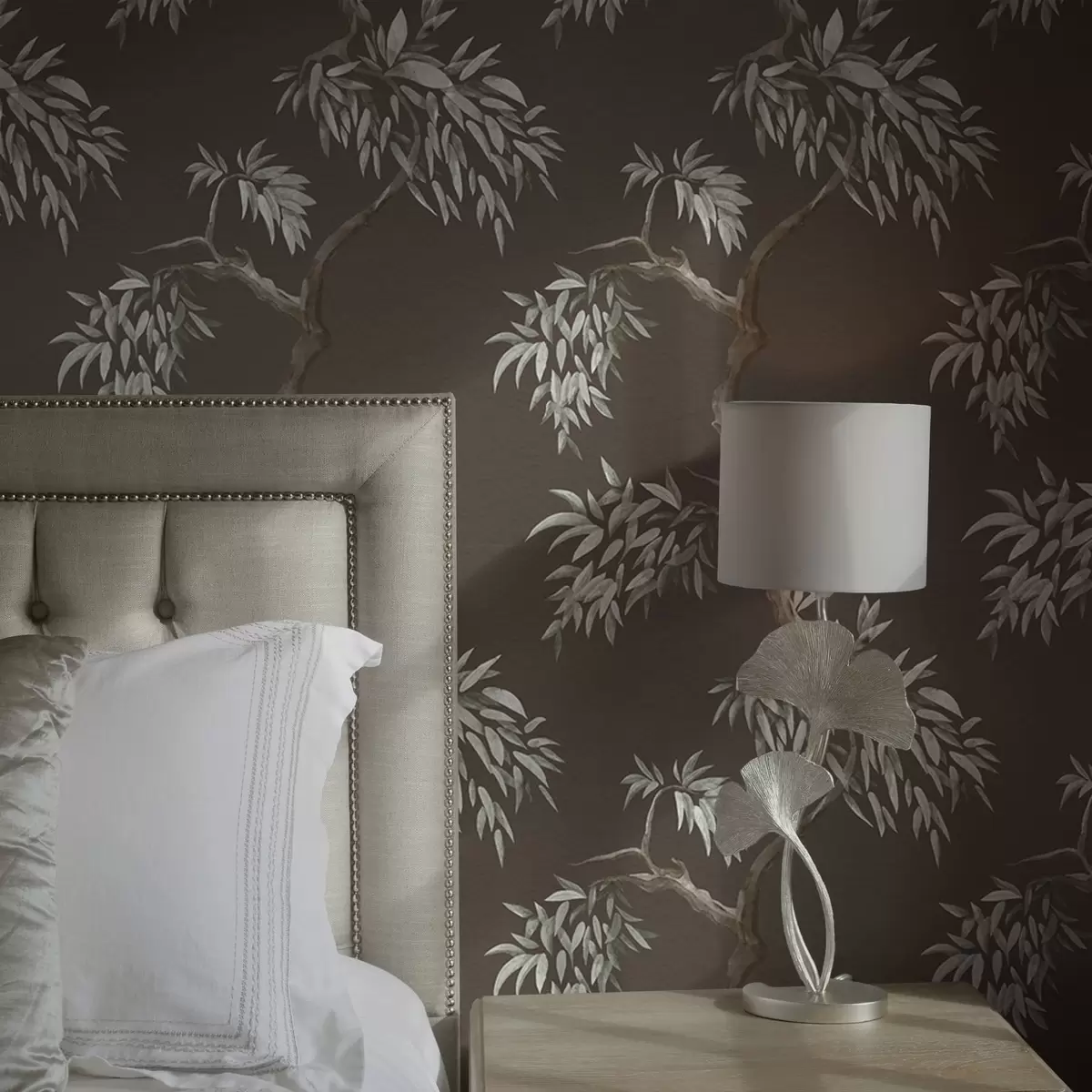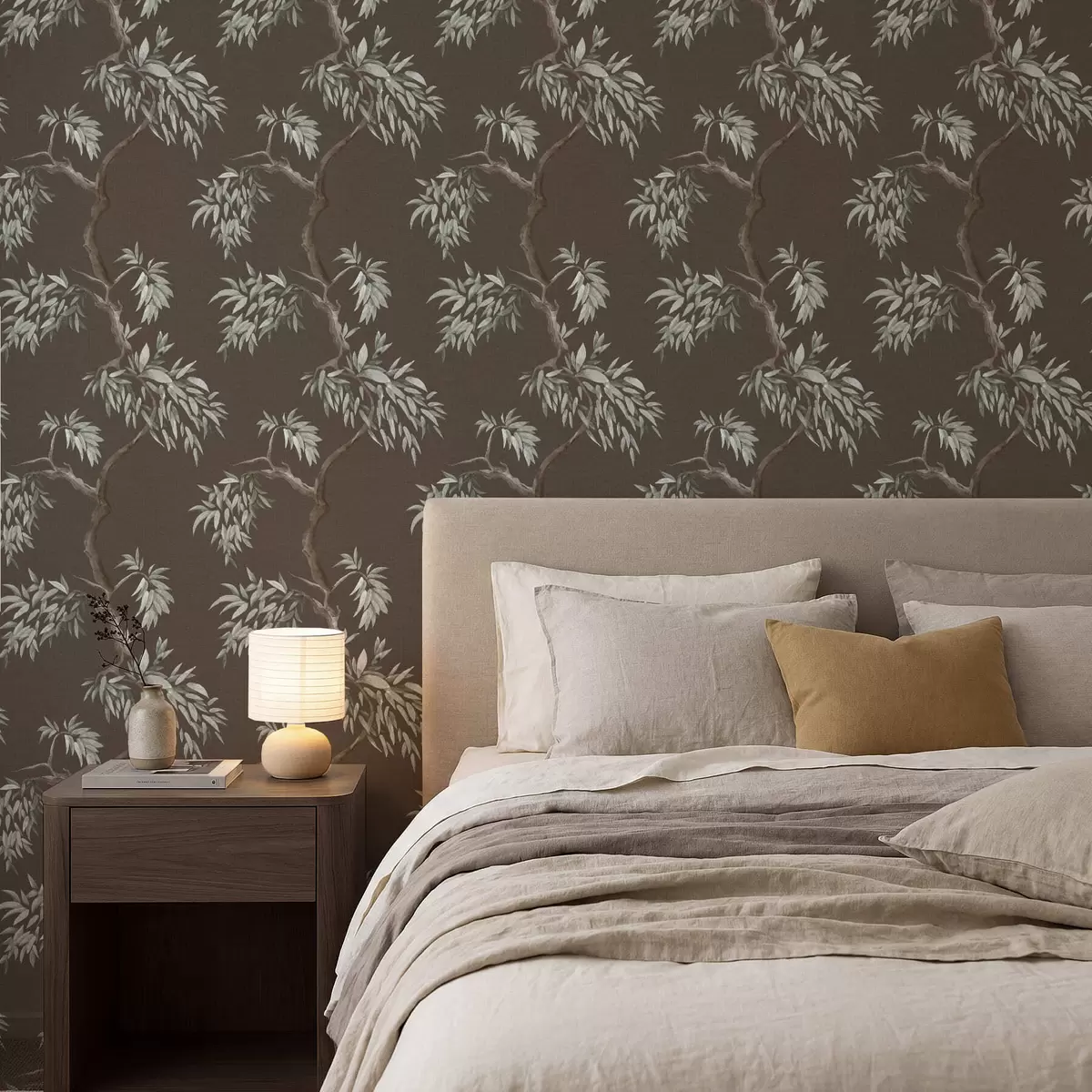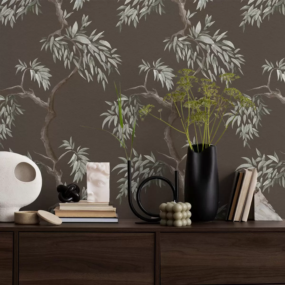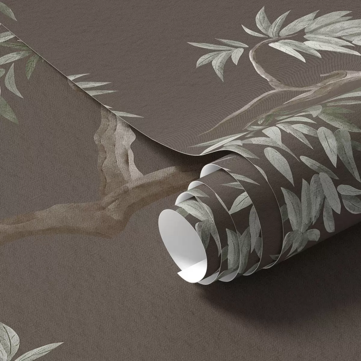 Тапет Клон на дърво с листа на кафяв фон Nr. a01117v3