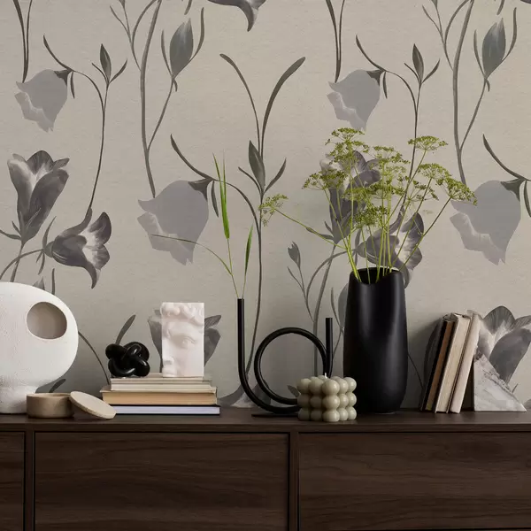 Тапет Сиви камбановидни цветя на светлобежов фон Nr. a01119