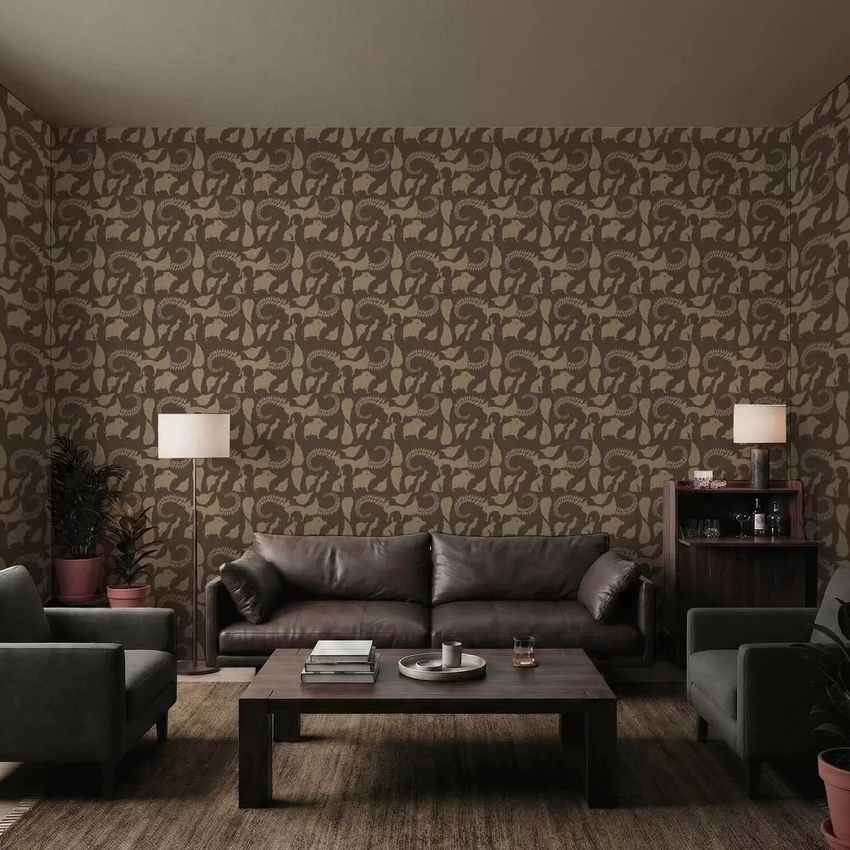 Тапет Горски мотив с животни на кафяв фон Nr. a01121