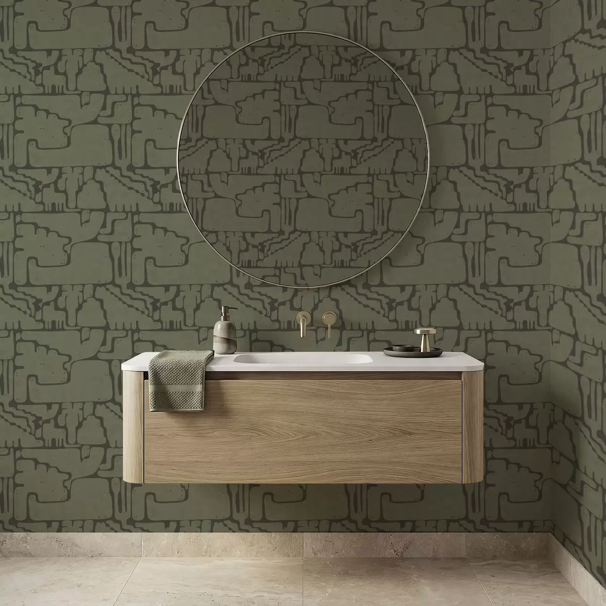 Тапет Абстрактен органичен мотив в зелени тонове Nr. a01122