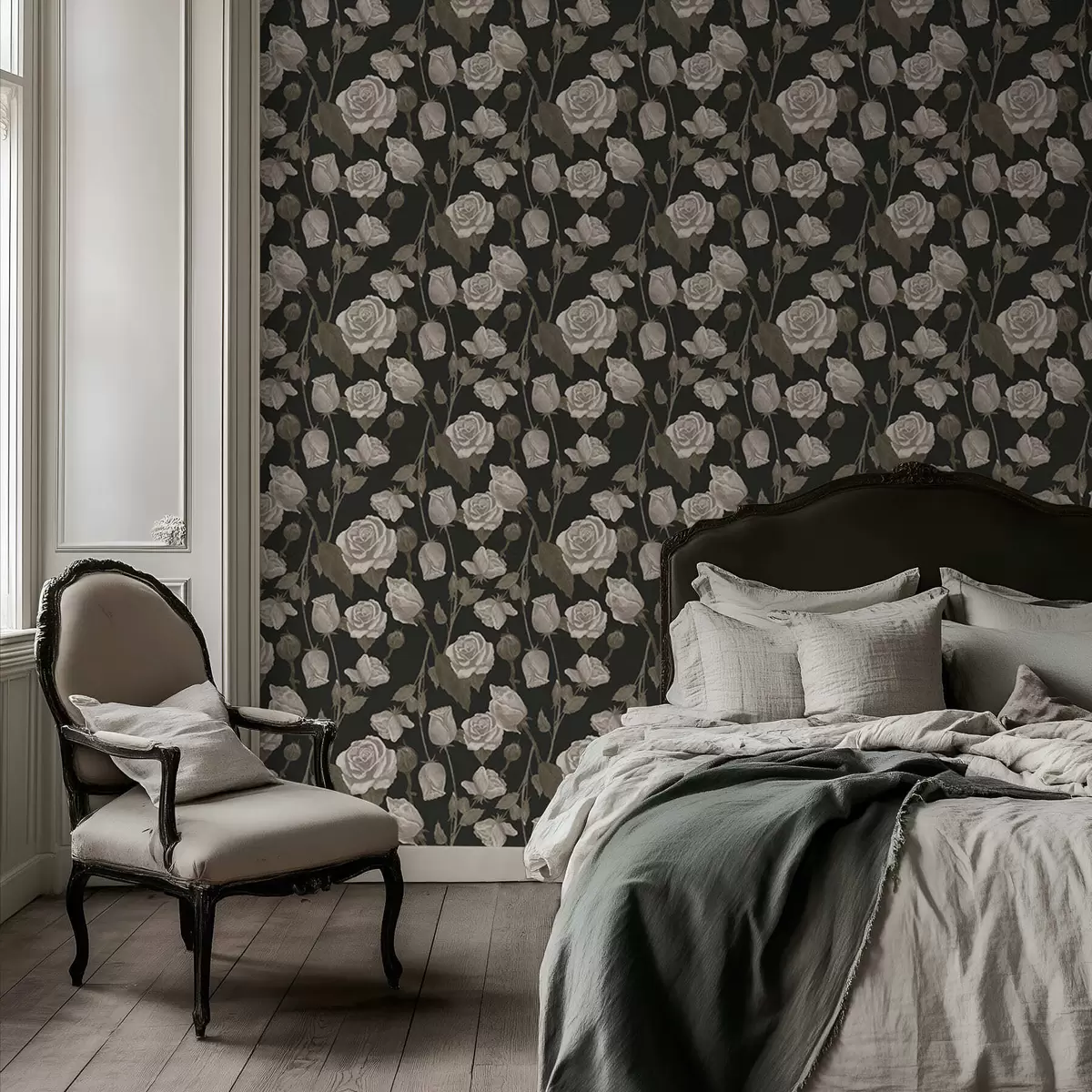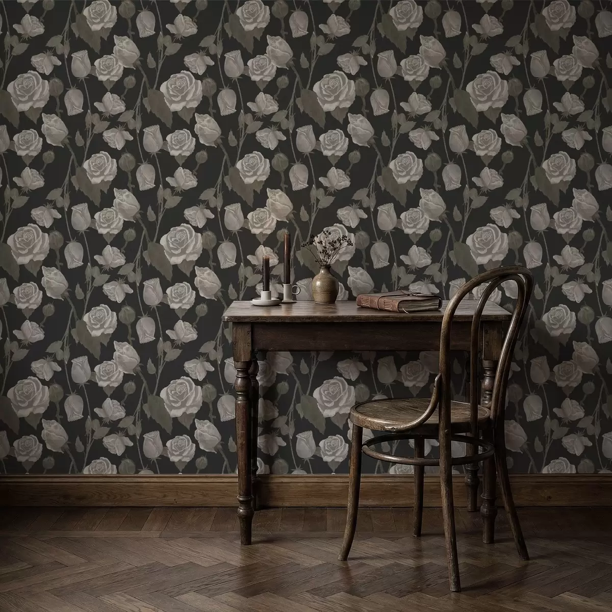 Тапет Цветя с рози на тъмен фон Nr. a01123
