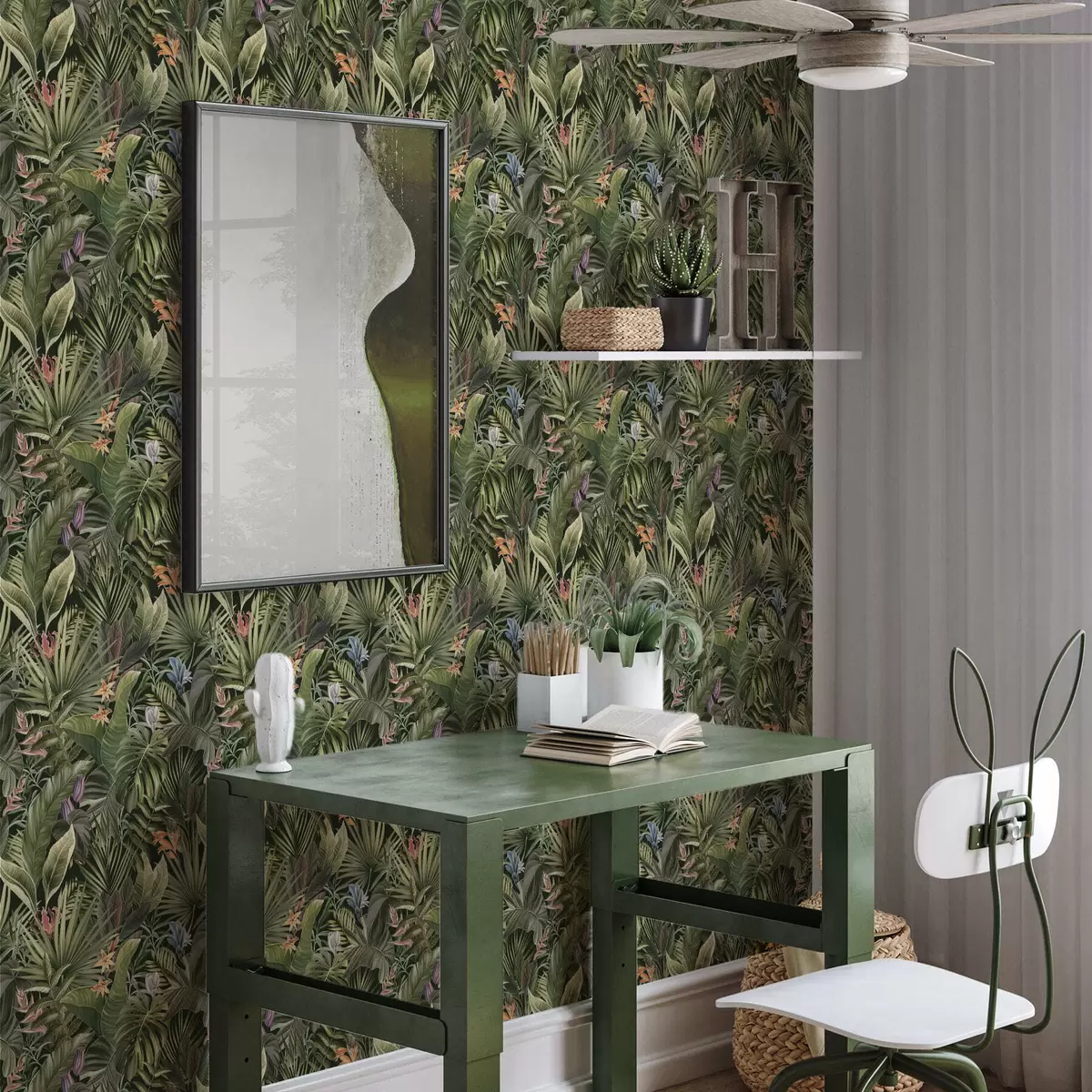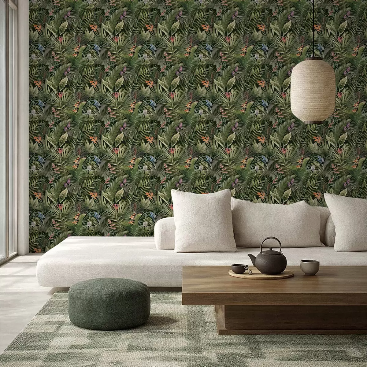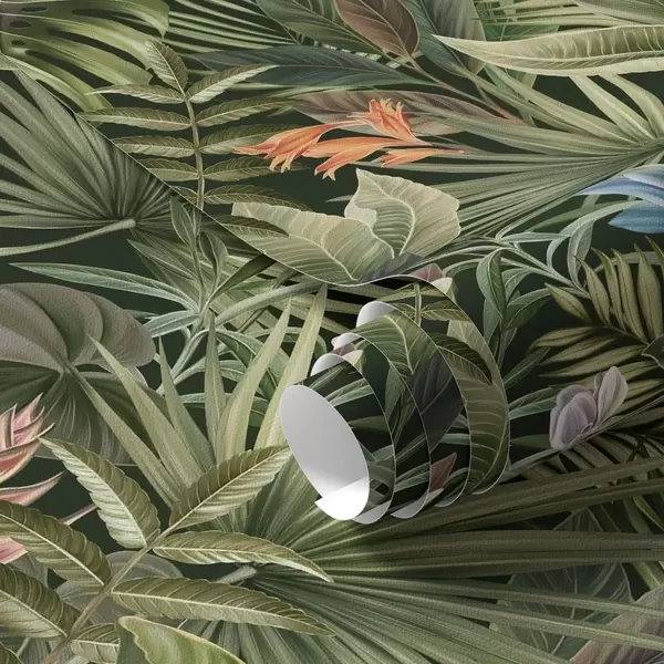 Тапет Тропически листа с цветя на тъмен фон Nr. a01153