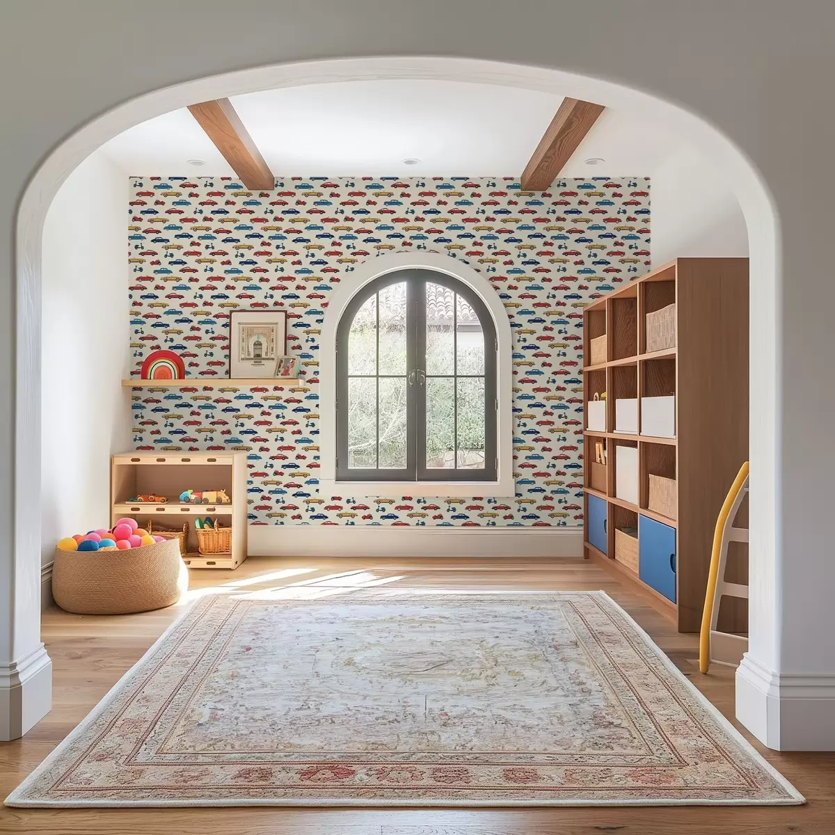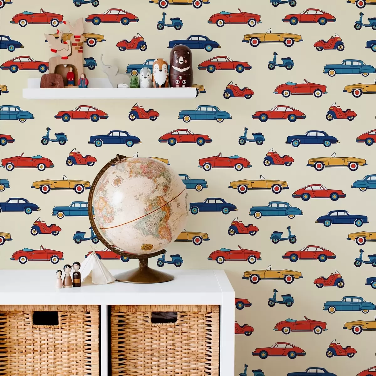 Тапет Ярки ретро автомобили и скутери на светъл фон Nr. a01172v1