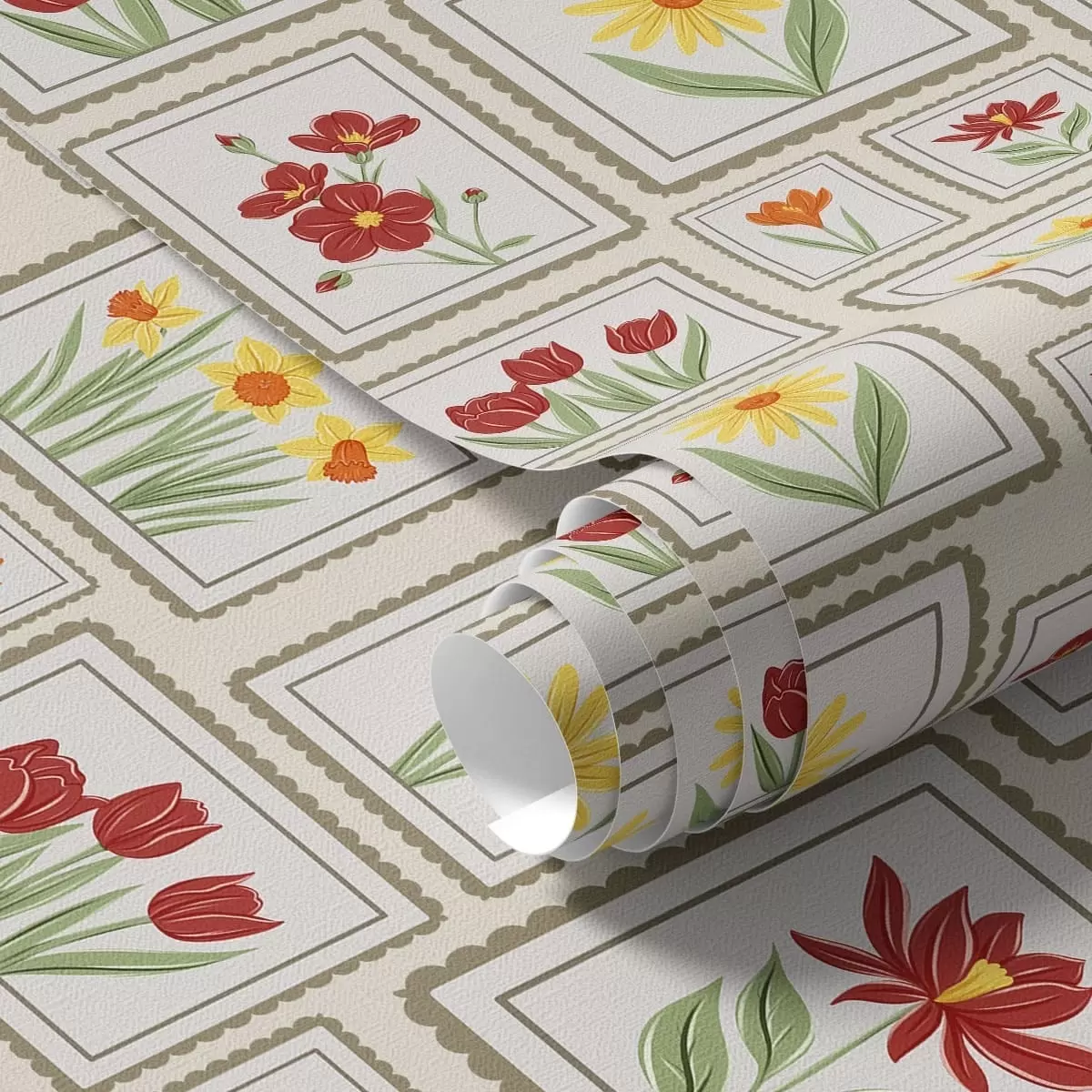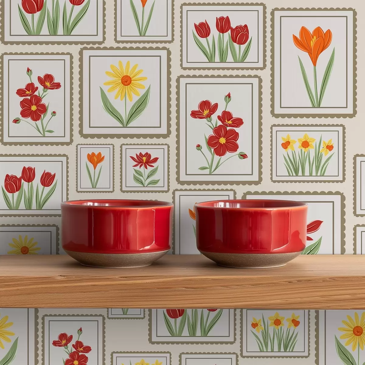 Тапет Илюстрации с цветя в рамки в топли тонове Nr. a01173