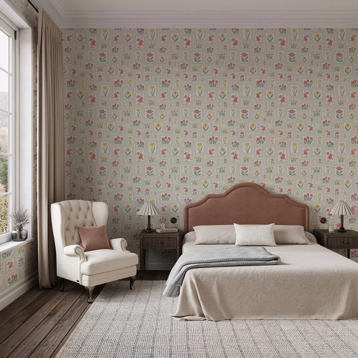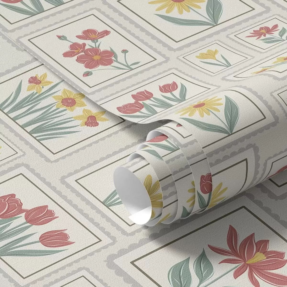 Тапет Илюстрации с цветя в рамки на светъл фон Nr. a01173v1