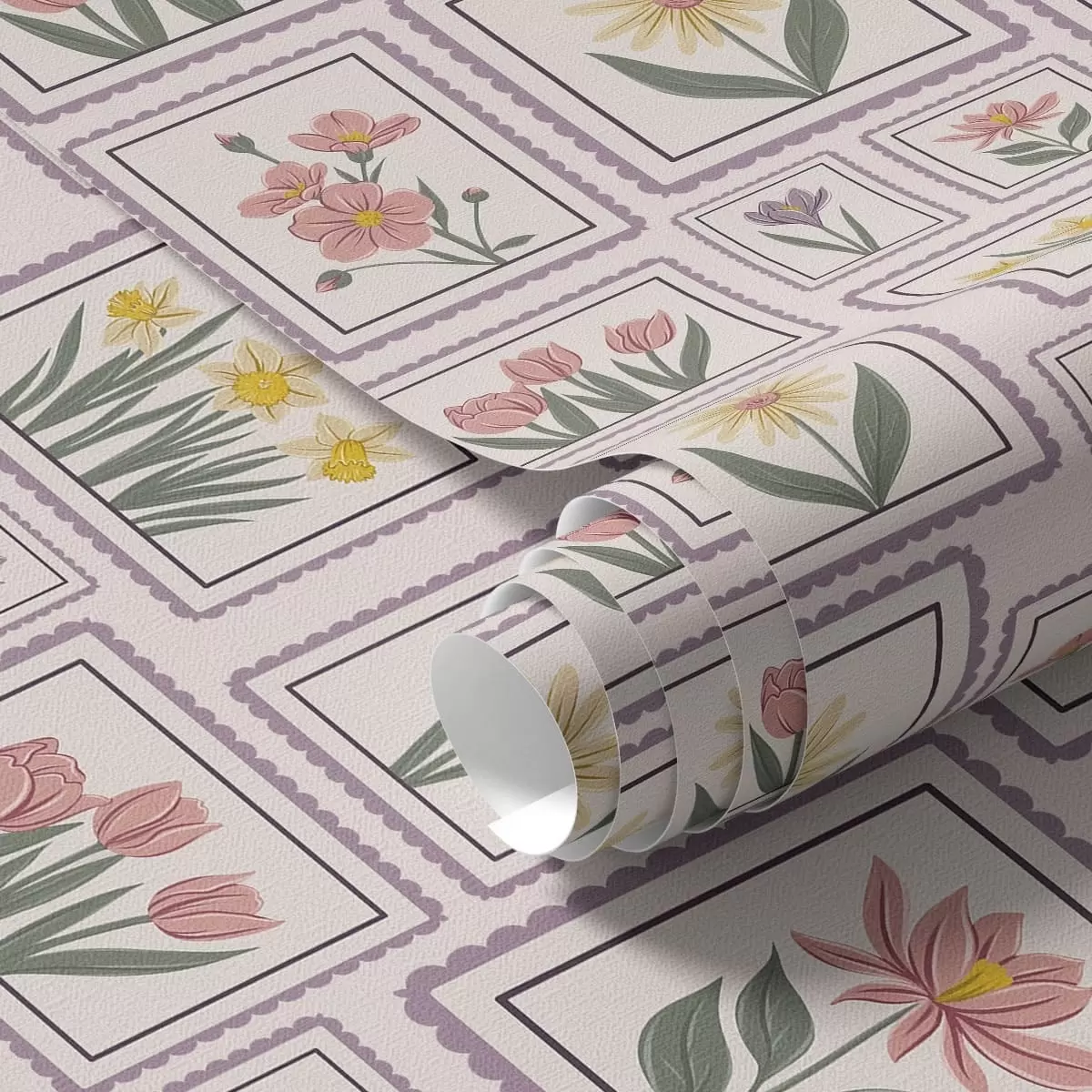 Тапет Илюстрации с цветя в рамки в лилави нюанси Nr. a01173v2