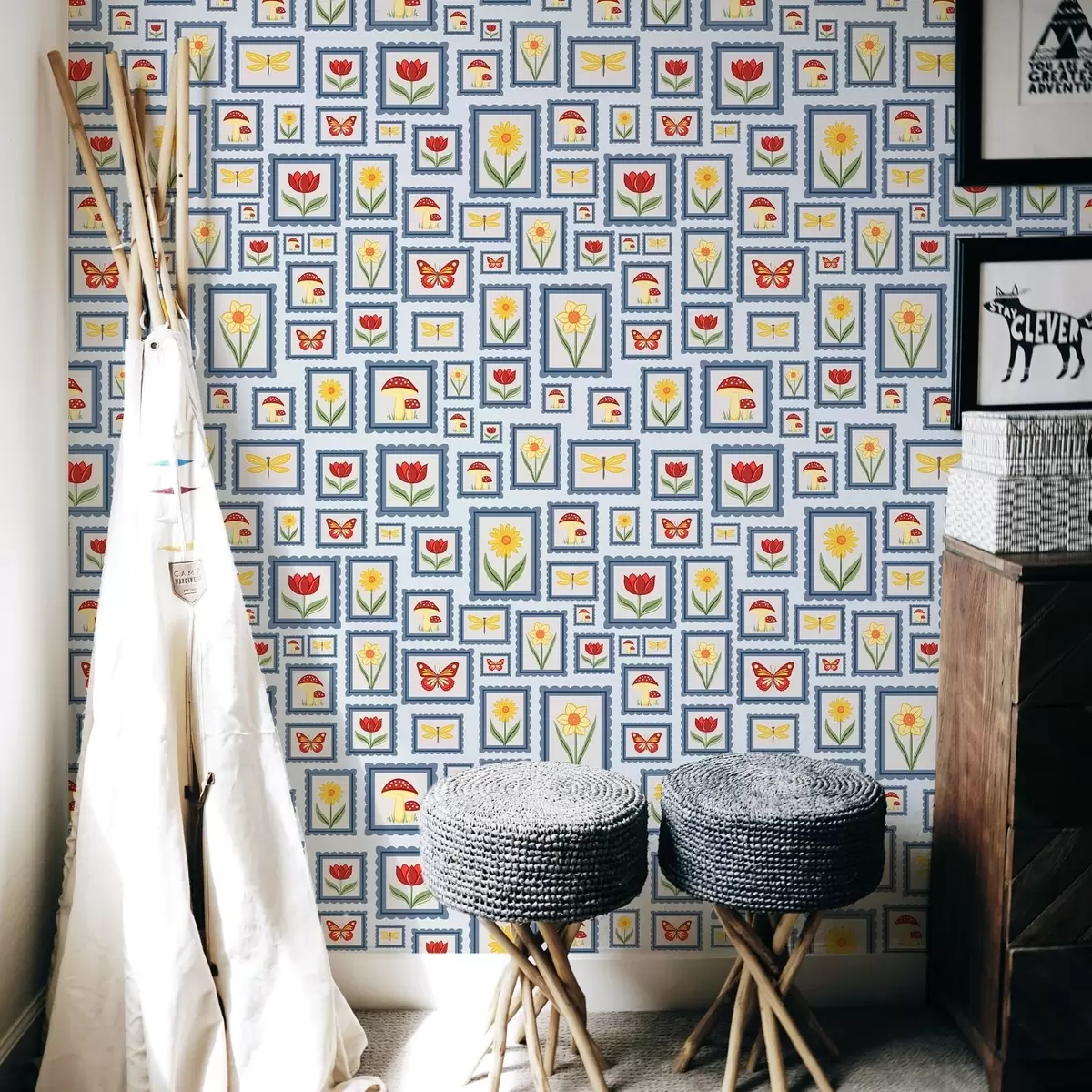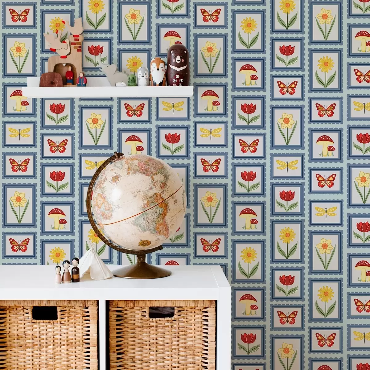 Тапет Илюстрации в рамки на син фон Nr. a01176