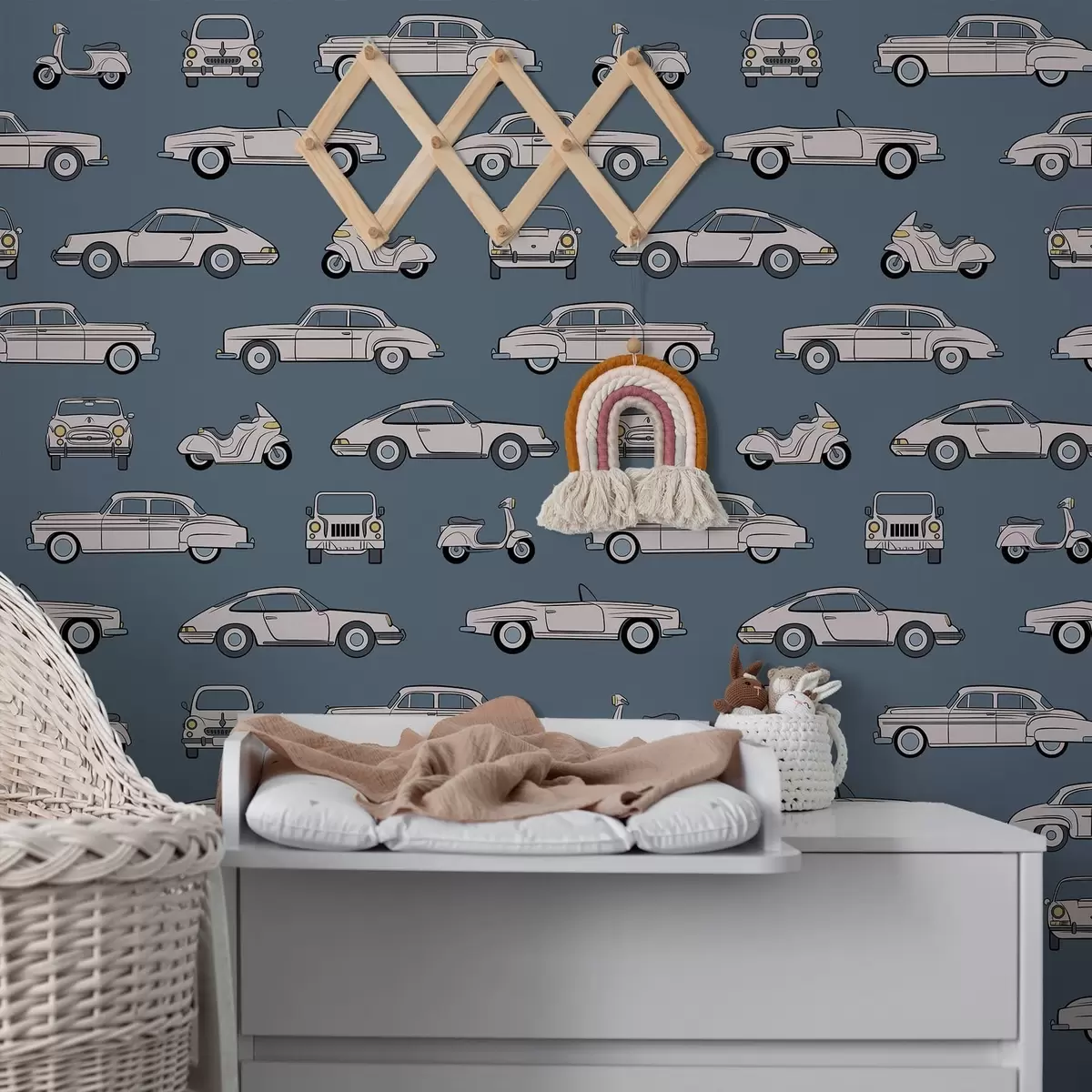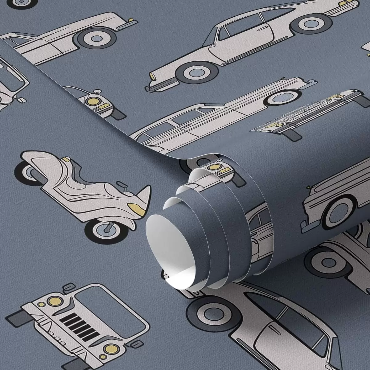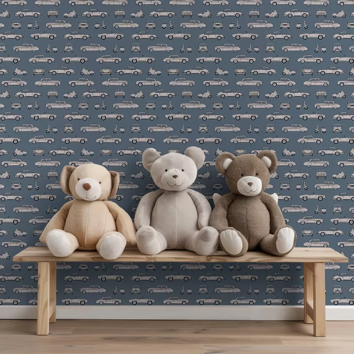 Тапет Ретро автомобили и скутери на син фон Nr. a01178