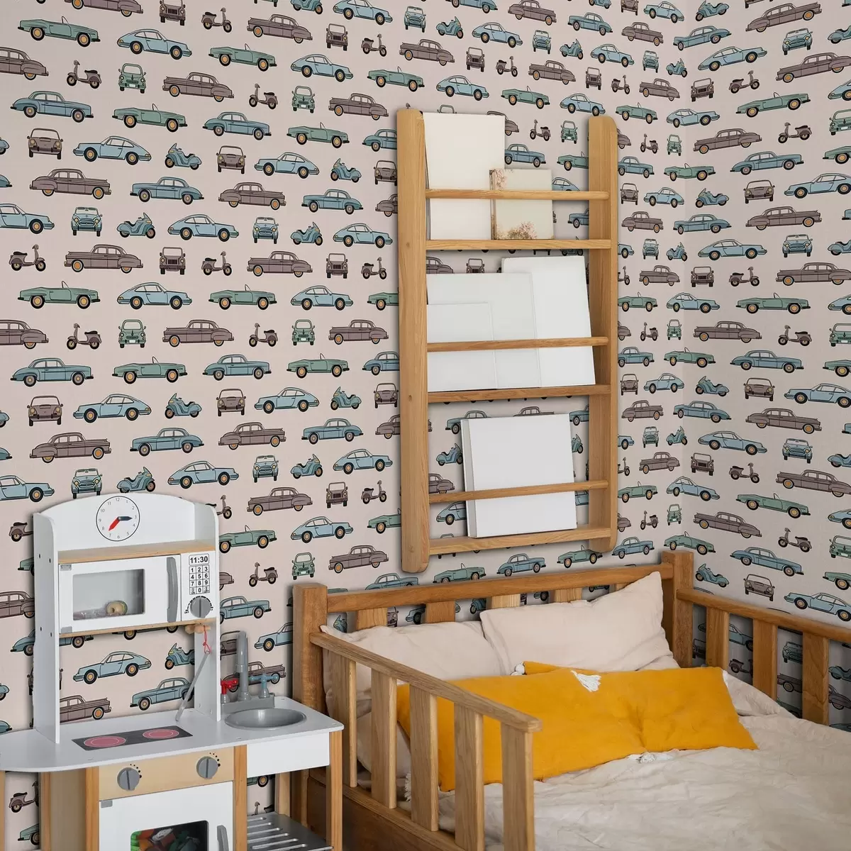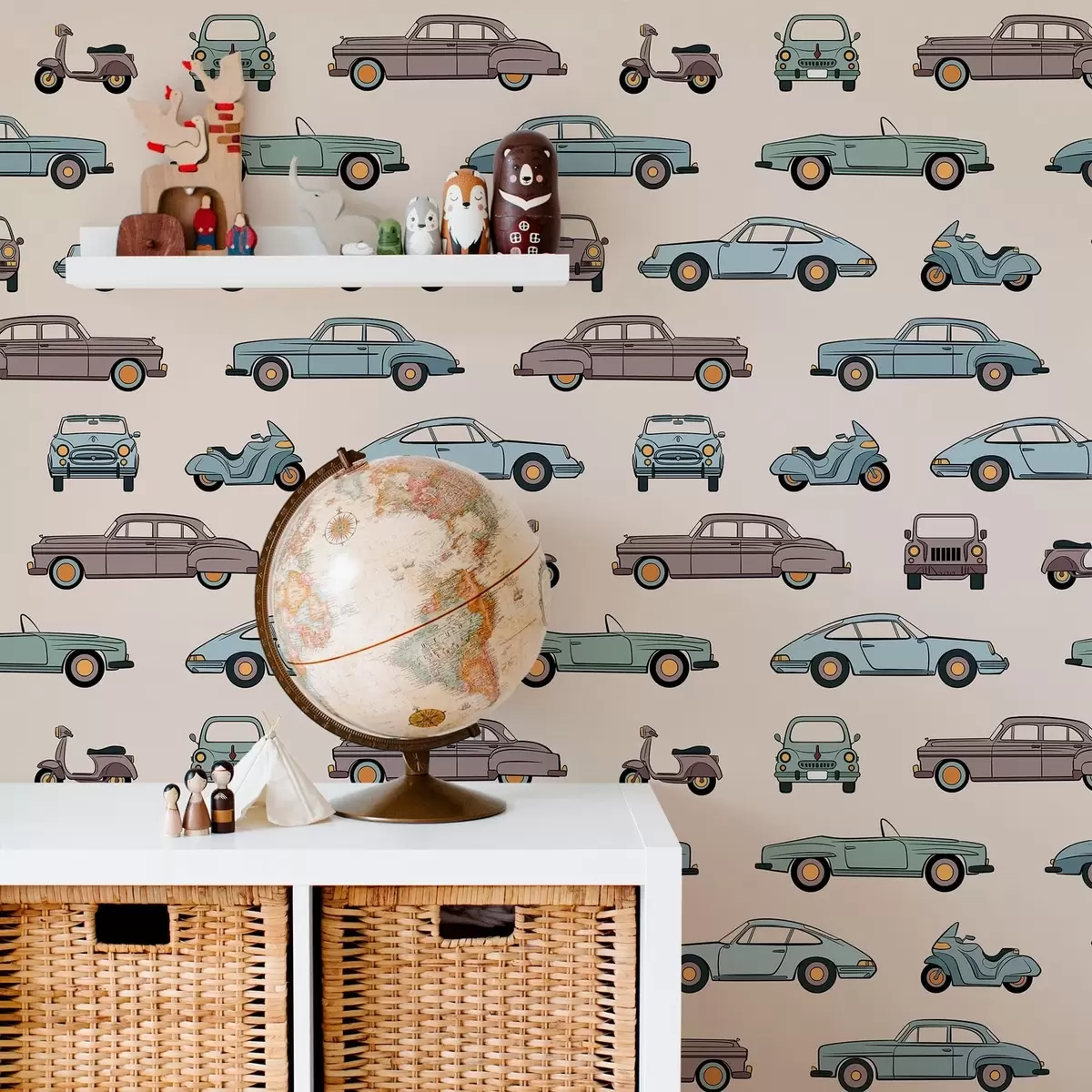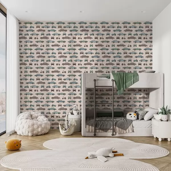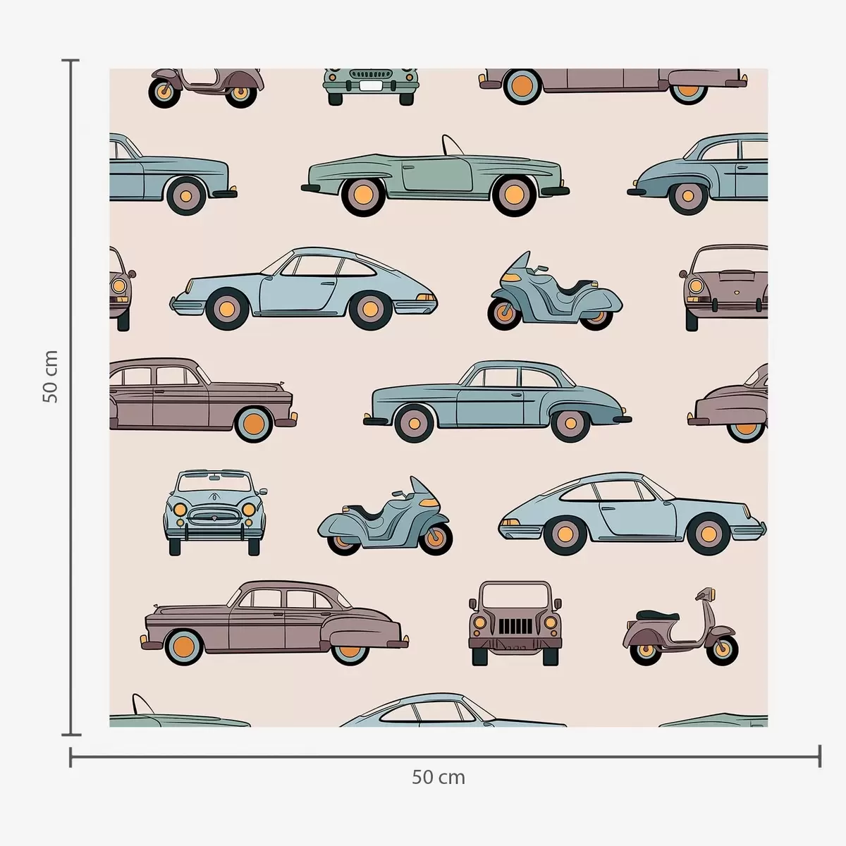 Тапет Ретро автомобили и скутери на бежов фон Nr. a01178v1