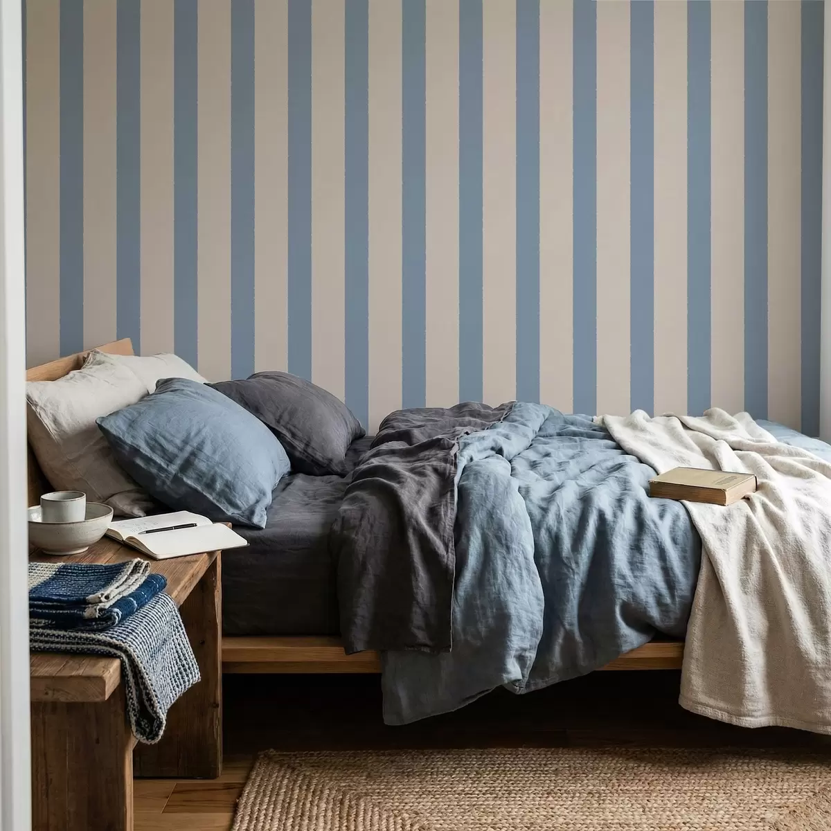 Тапет Бежови и светлосини вертикални ивици Nr. a01180v3