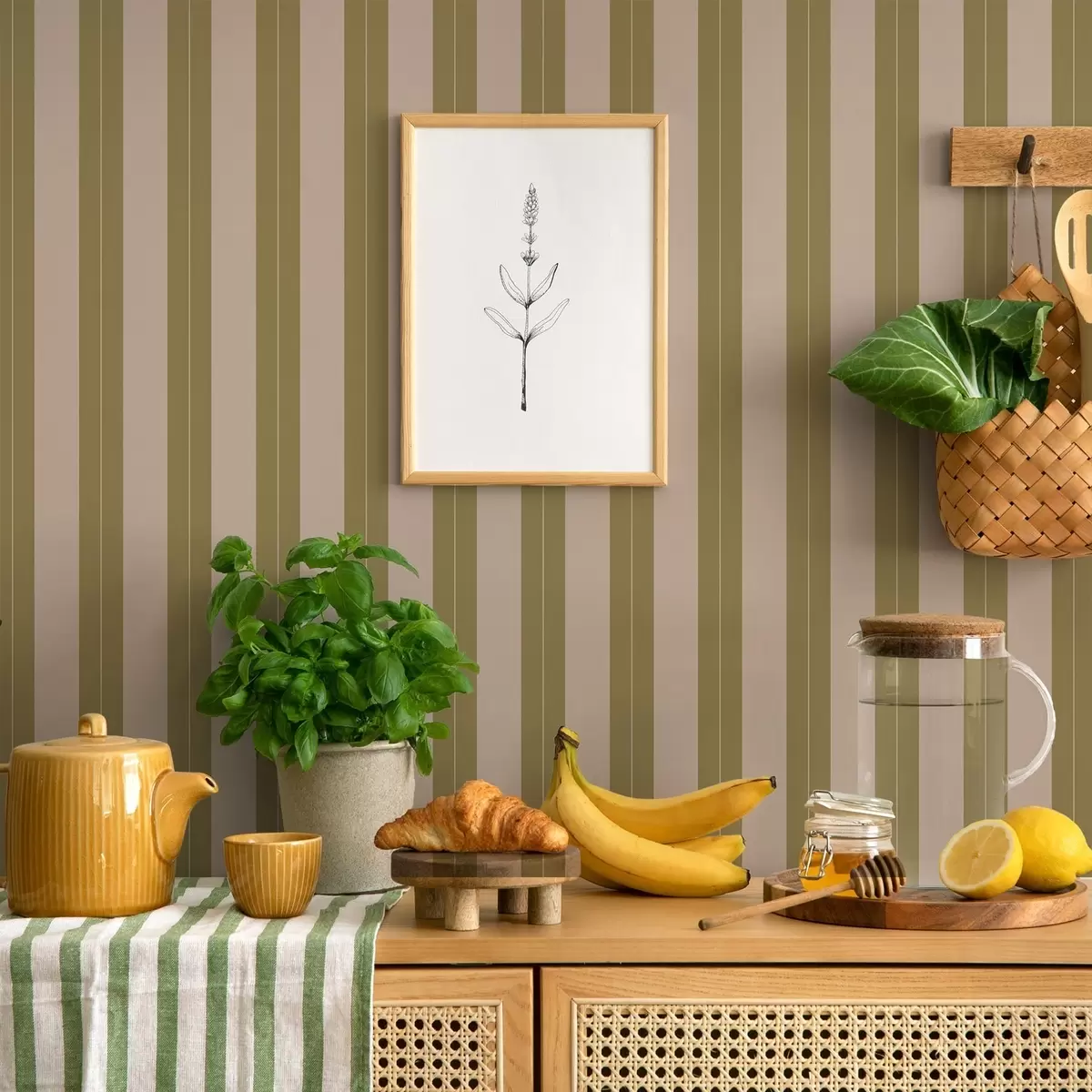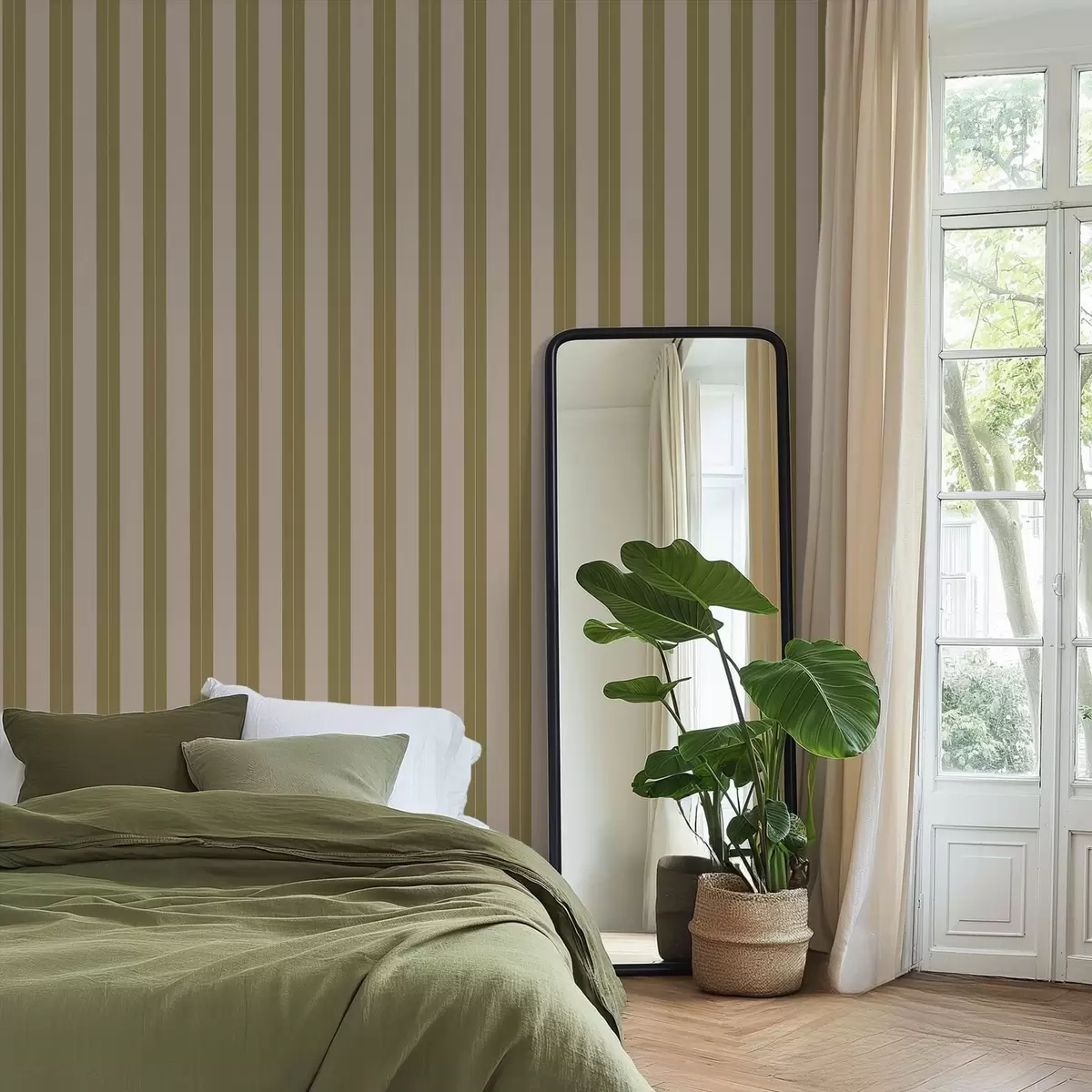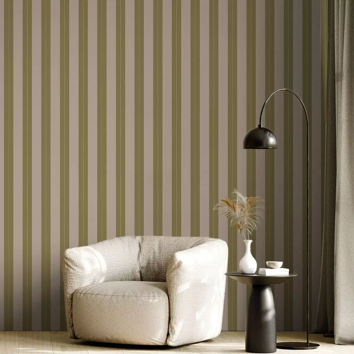 Тапет Вертикални ивици в цвят маслина и бежово Nr. a01181v2